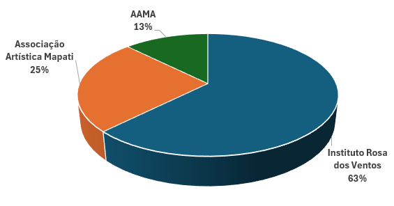 Conforme apresentado anteriormente, os Comitês de Cultura são formados por diversas Organizações da Sociedade Civil (OSCs), sendo que uma delas assume a responsabilidade pela gestão da rede de parceiras e pela execução das ações previstas nos planos de trabalho. Nesse arranjo, o Ministério da Cultura (MinC) estabelece a colaboração com uma OSC Mãe (OSC Celebrante), que coordena e acompanha as atividades das OSCs Filhas (OSCs Parceiras), relação formalizada por meio de um Termo de Atuação em Rede (TAR). As OSCs estão distribuídas em diferentes regiões do estado e devem orientar suas iniciativas de acordo com as Regiões Imediatas Prioritárias (RIMPs) definidas pelo Ministério, garantindo que a atuação seja territorializada, desconcentrada e descentralizada. A seguir, apresenta-se a atuação de cada uma das OSCs que compõem o Comitê, bem como os municípios em que já desenvolveram ações.