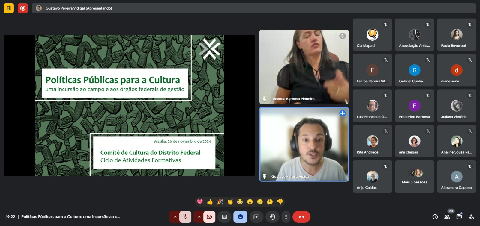 Oficina realizada de forma remota, com público diverso e participantes de vários estados. Esta ação teve o apoio da Articulação Nacional de Trabalhadores da Cultura (ANTE) e se trata de Curso Livre sobre diferentes leituras e abordagens em relação à dinâmica econômica da cultura, abordando características de bens e serviços, setores e sistemas econômicos deste campo. A partir dessa introdução, serão abordadas algumas pesquisas nacionais e internacionais sobre esse tema, contribuindo para a realização de uma leitura crítica frente a desafios e oportunidades correntes neste campo econômico.